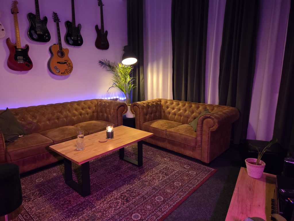 Unsere große, gemütliche Lounge lädt zum Ankommen, Entspannen und Austauschen ein – der perfekte Ort, um kreative Energie fließen zu lassen. Bei uns entsteht kein Stress, sondern Musik mit Gefühl, Präzision und Leidenschaft.